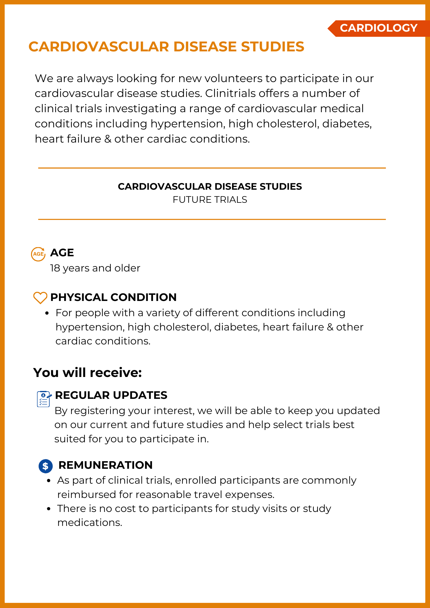 REGISTER HERE FOR FUTURE CARDIOVASCULAR DISEASE STUDIES